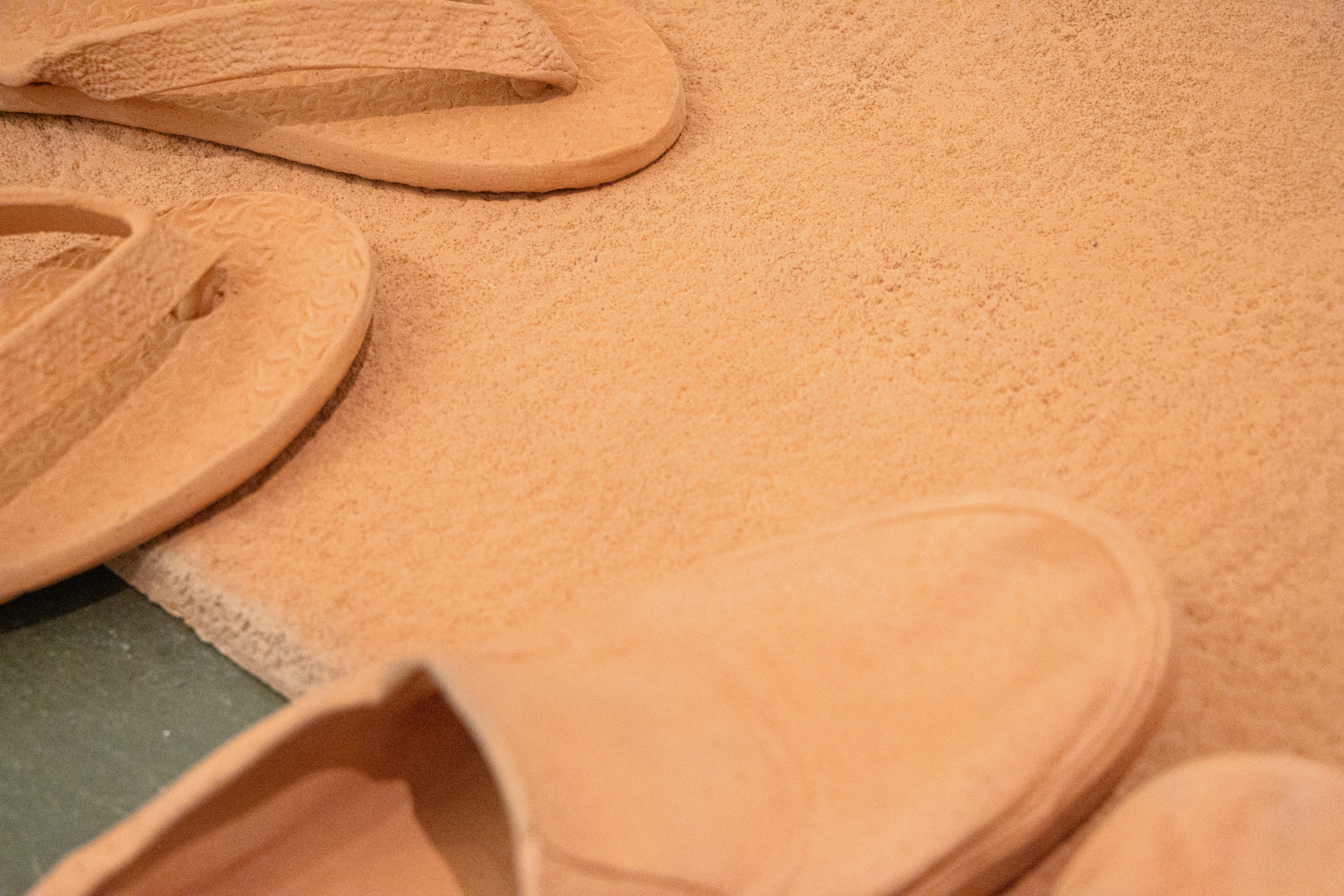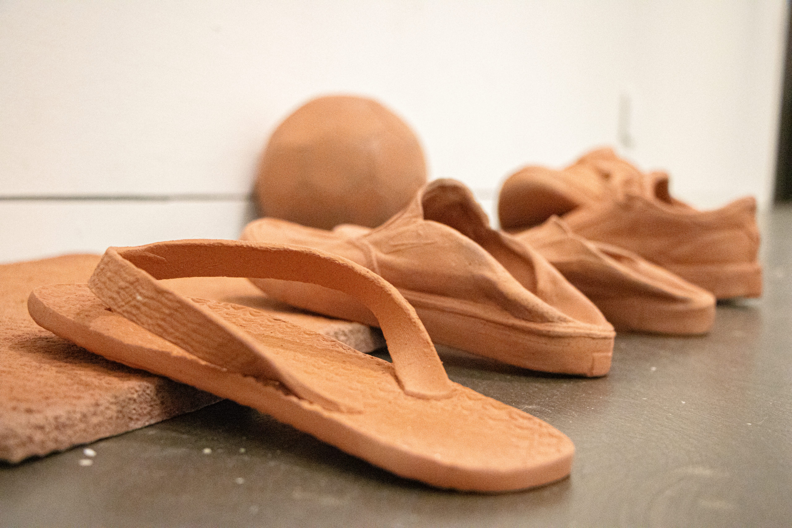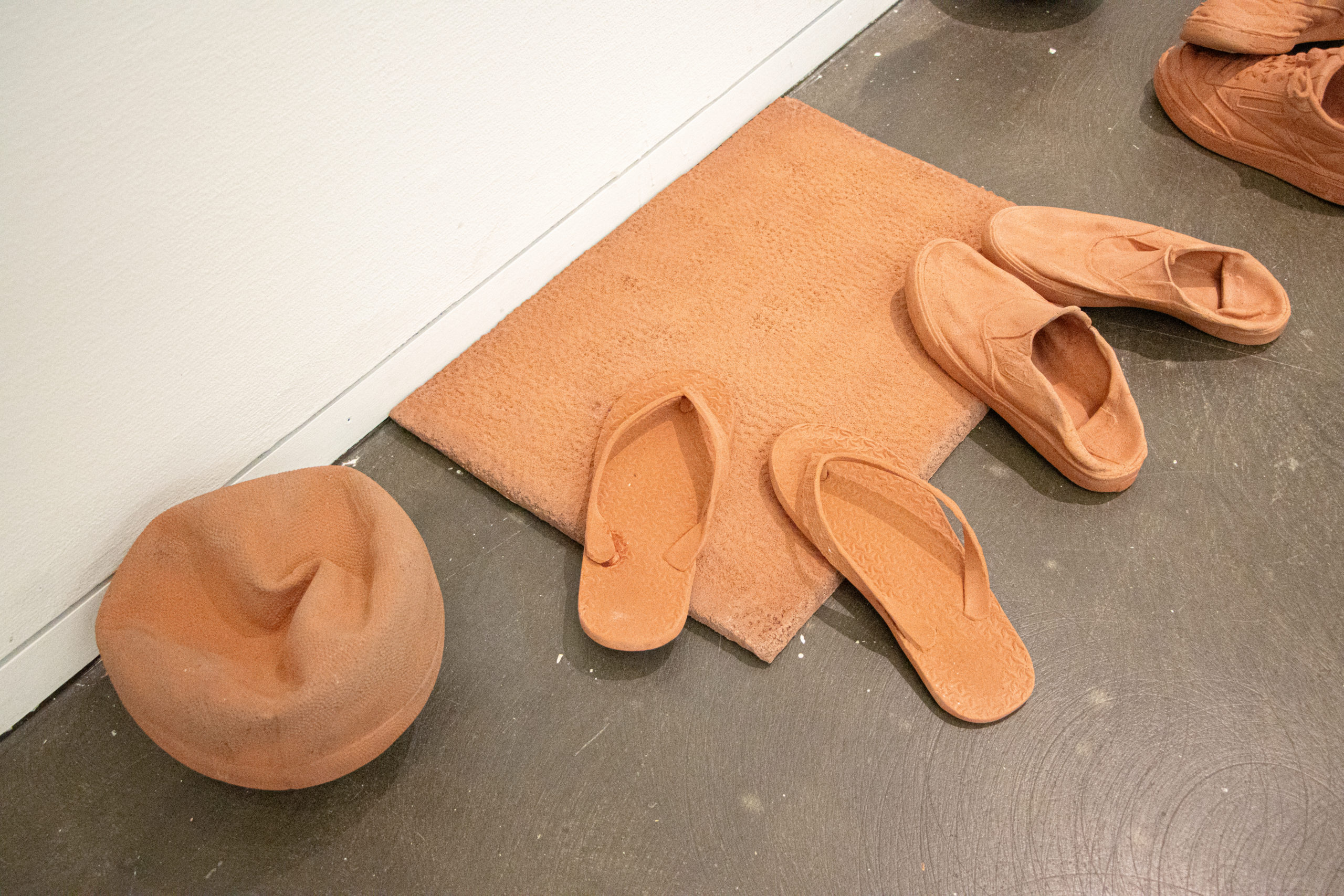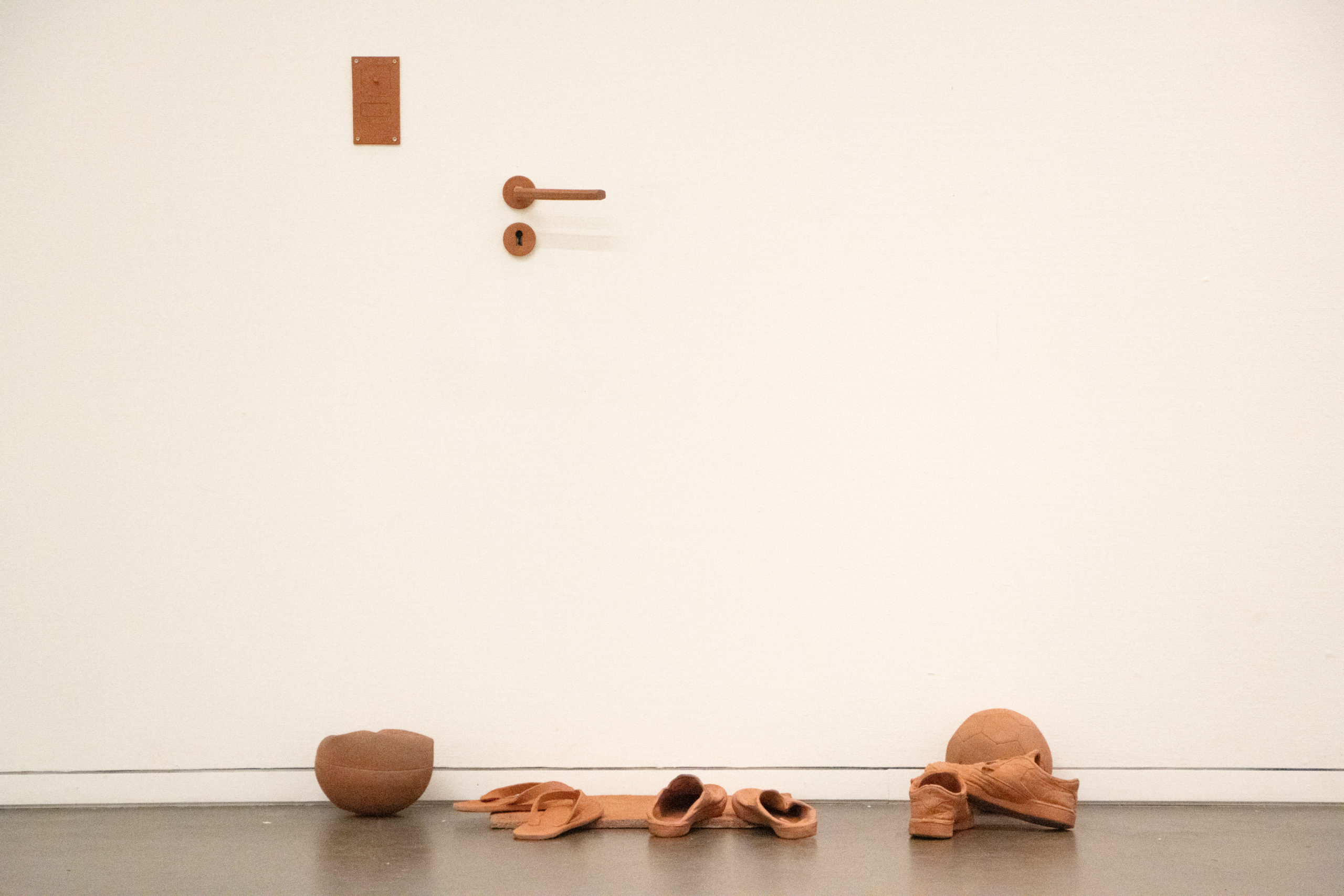 A l’occasion des 30 ans du bureau de GD architectes, basé à Neuchâtel, « Passage » a été réalisé à la demande de la galerie C afin de créer une œuvre en dialogue avec l’un des projets architecturaux. L’installation céramique répond au bâtiment locatif dont les murs extérieurs sont en en tuile rouge en céramique. Il est situé à Serrières, Neuchâtel. La reconstitution d’une entrée reprend l’organisation de l’architecture dont la volonté était de mettre l’accent sur les coursives permettant d’être à l’extérieur tout en étant à l’intérieur de son appartement. La couleur des objets, copie la couleur de la tuile, mais l’argile utilisée est, elle adaptée à la sculpture par sa température de cuisson bien plus élevée que celle des tuiles. L’architecture devient ainsi un outil d’analyse des usages, des comportements et des dynamiques sociales qu’elle génère ou accueille. Tandis que le matériau crée une unité dans un ensemble qui est normalement clos et standardisé. L’installation « passage » crée ainsi une interaction entre l’architecture et l’art, la déambulation, le temps, les usages et les individus. Elle invite ainsi à repenser notre relation aux espaces que nous habitons, et à considérer l’architecture comme un champ d’expérimentation, de projection et de questionnements qui évoluent sans cesse.